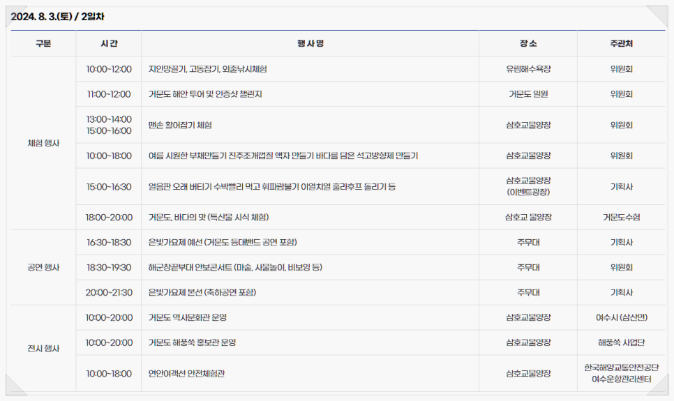 전남 여수 바다축제 거문도 백도 은빛바다체험행사 배편 축제일정