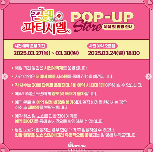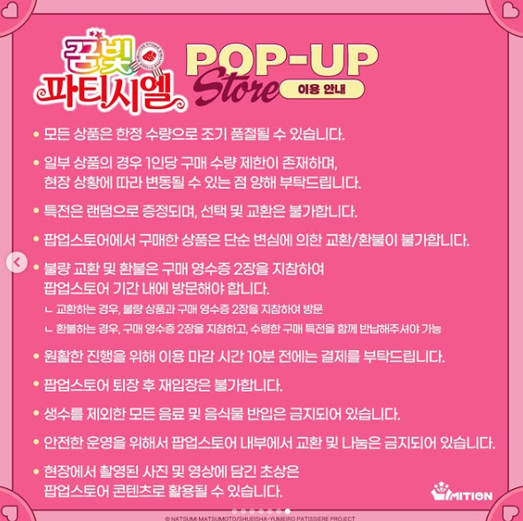추억과 설렘이 가득한 이번 팝업스토어에서 '꿈빛 파티시엘'의 특별한 세계를 직접 경험해 보세요! 💖
