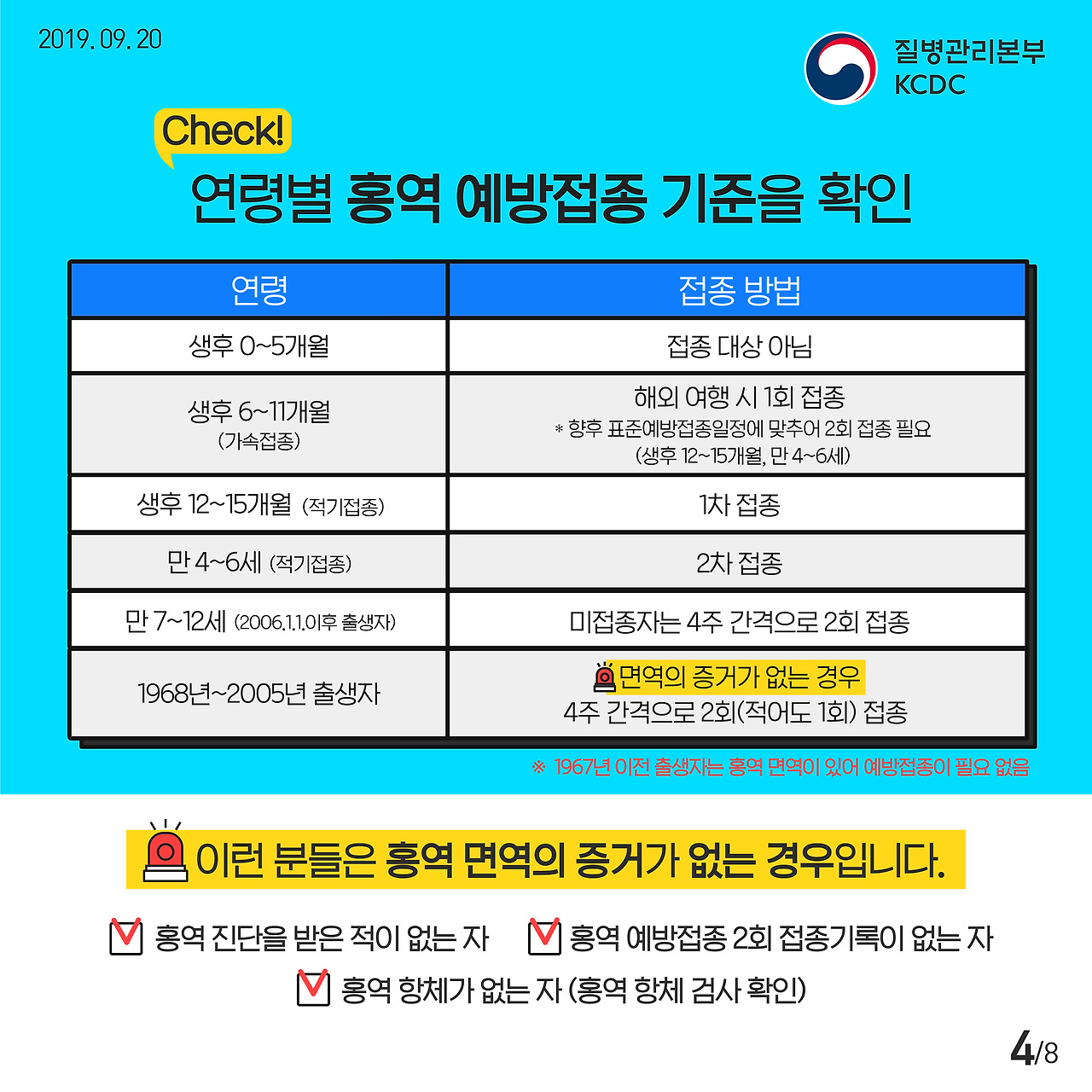 - 해외여행을 앞두고 있다면 출국 최소 한 달 전에는 예방접종 및 항체 유무를 확인해야 합니다.
